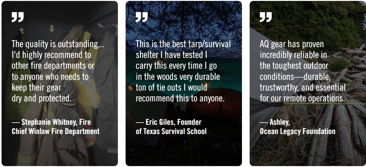 AquaQuest delivers industry-leading tarps, shelters, and waterproof bags designed for serious adventurers. Whether you’re camping, hiking, or surviving the unexpected, AquaQuest helps you stay protected, dry, and ready for whatever nature throws your way.